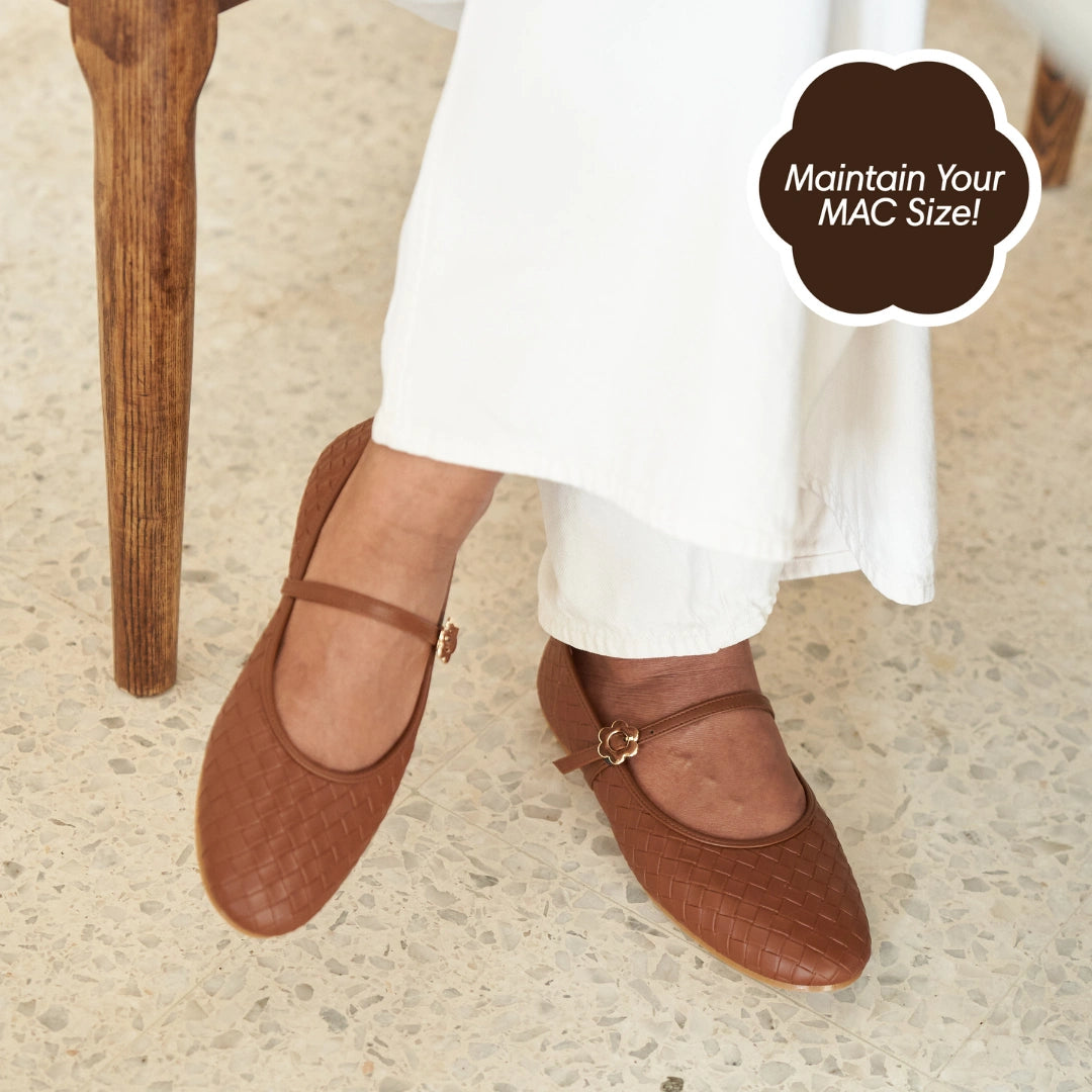 Grace meets craftsmanship with the Pointe Ballerina Flats in Woven Brown. Locally crafted with a deep chocolate brown tone, perfectly matching with your wardrobe, this combo would immediately make any outfit light up the room!