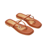 Featuring slender crisscross straps in warm brown, complemented by the iconic gold-plated Hana flower charm, these flats bring understated elegance to your daily wardrobe. The square-toe design and padded insole ensure all-day comfort that's perfect for strolling through the city, casual outings, or relaxed weekends.