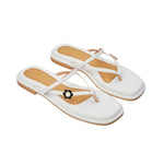Featuring slender crisscross straps in pure white, complemented by the iconic gold-plated Hana flower charm, these flats bring understated elegance to your daily wardrobe. The square-toe design and padded insole ensure all-day comfort that's perfect for strolling through the city, casual outings, or relaxed weekends.
