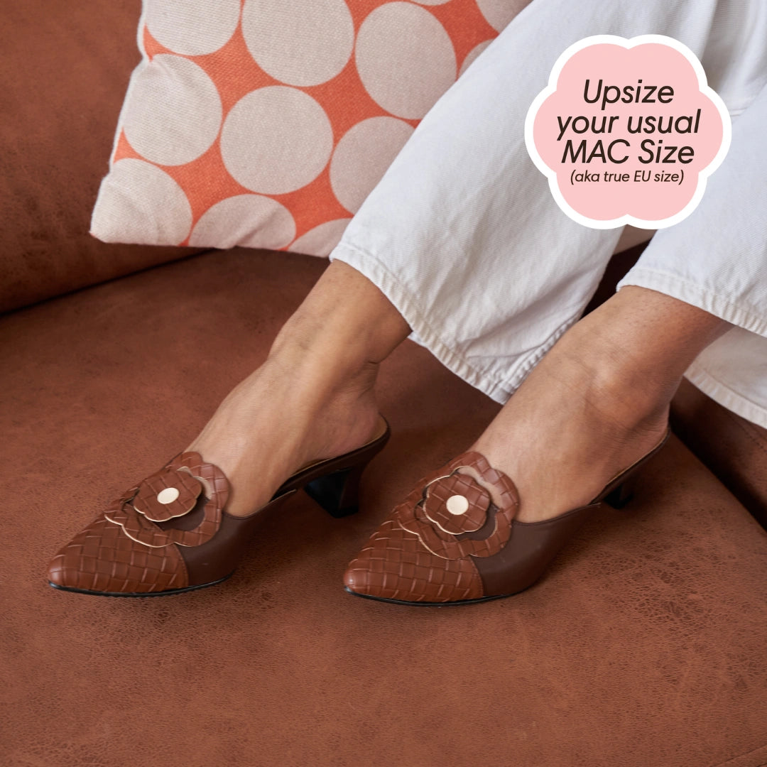 It is recommended to go one size up from your usual MAC shoe size for closed-toe designs.