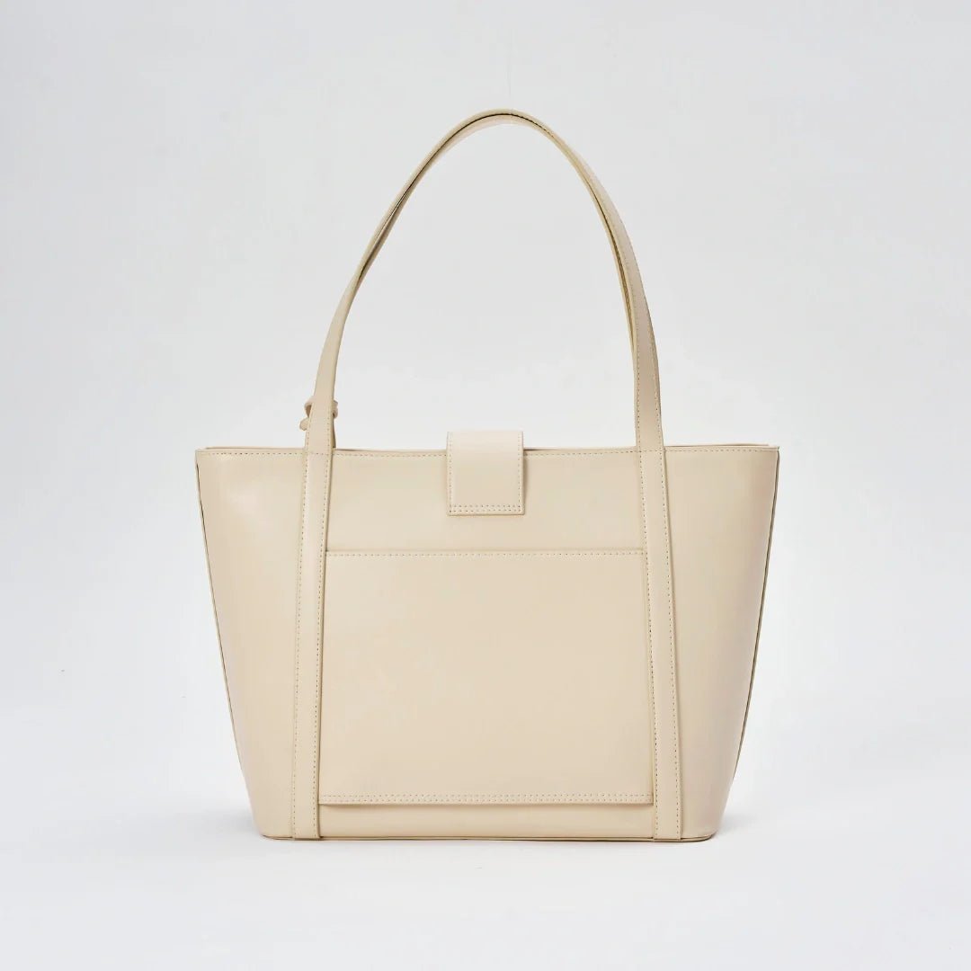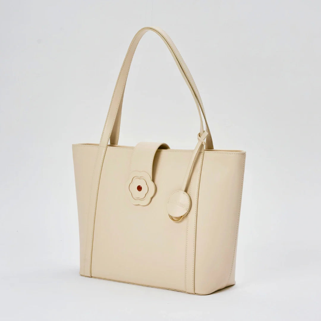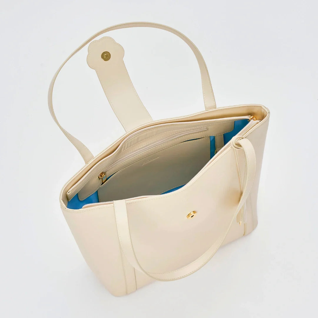 Crafted in a soft cream beige tone and finished with Machino’s signature 6-petal Hana flower clasp, this carry-on merges function with femininity. Designed with ample interior space of 33cm in length, it comfortably fits up to a 15-inch laptop, your essentials, and even includes a dedicated sleeve for your water bottle.