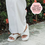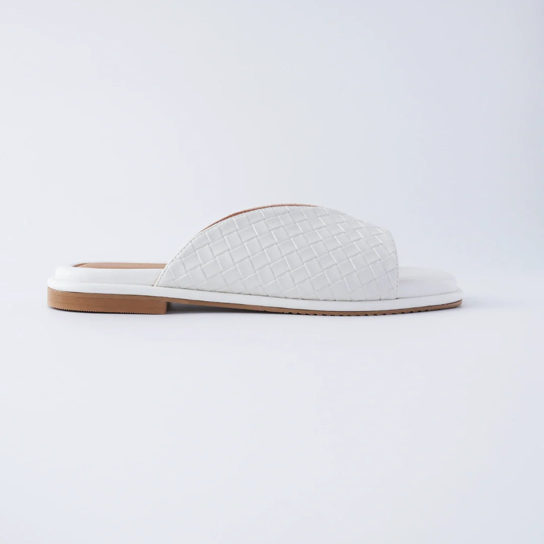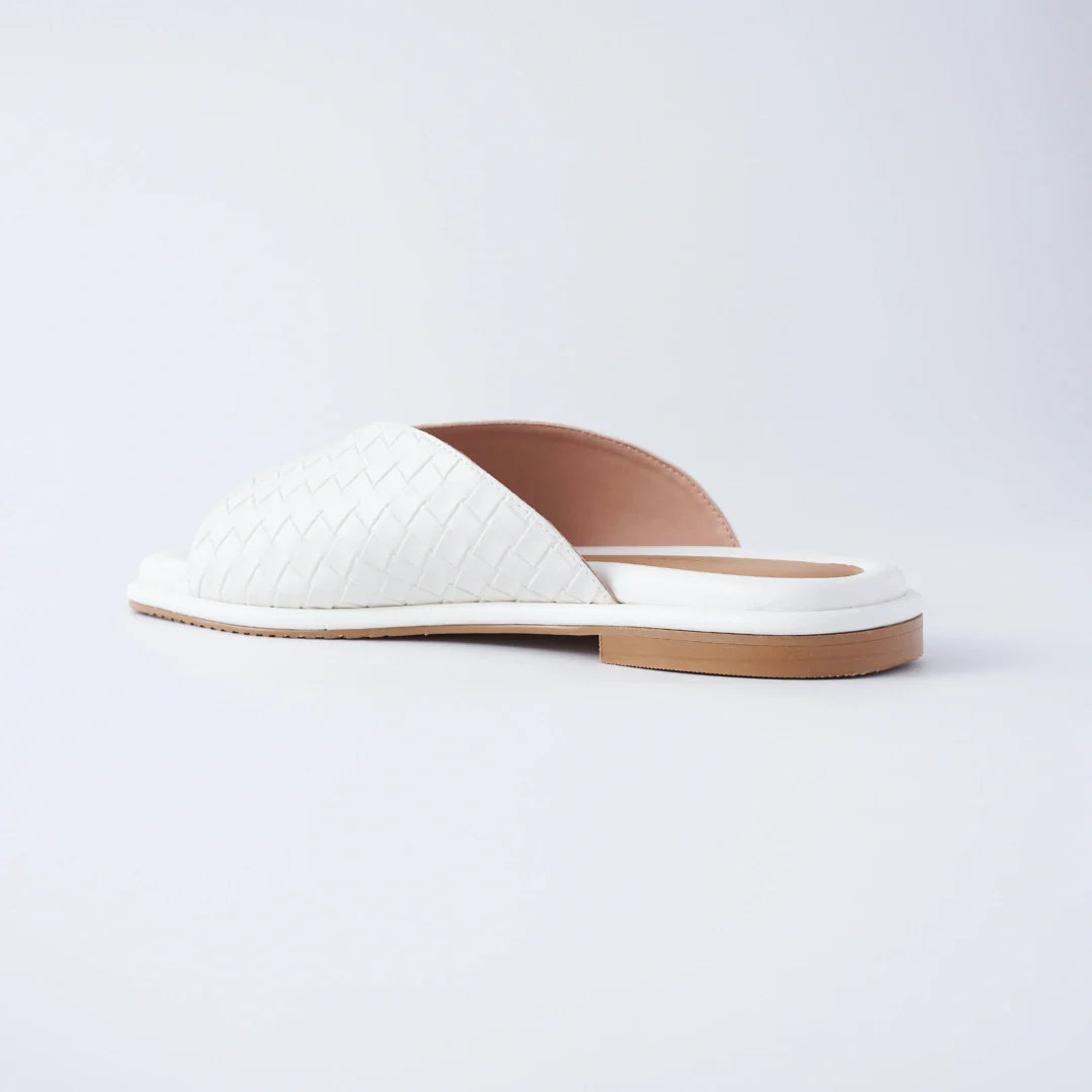 A little twist to spice up your step — meet our Woven Sandals, the perfect everyday slip-on sandals for ladies with just the right touch of detail. Crafted with a new white woven fabric, this pair adds subtle texture and creates a slimming effect on your feet for a clean, polished look.