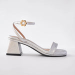 A modern twist on a festive classic. Bliss Block Heels in Cheongsam Silver brings shimmer, sweetness, and just the right touch of elegance to any celebration. The adjustable minimalist straps create a flattering silhouette, while the subtle Hana buckle adds a soft, feminine charm. Finished with our signature thick sponge insole and a comfy 2” block heel, this pair keeps you grounded (and glowing) from morning reunions to late-night visits.
