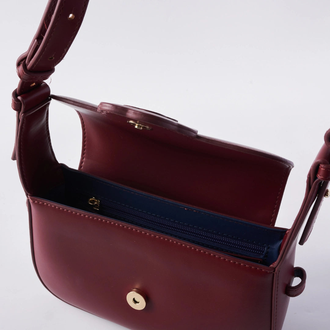 Rich, elegant, and statement-worthy. The Iconic Sling Bag in Hana Cherry is crafted in PU with a deep, sophisticated tone that elevates any outfit. Compact yet roomy, it fits an iPhone Pro Max comfortably and features a zip compartment plus back pocket to keep your essentials secure. Finished with an adjustable strap and magnetic flap, it’s designed for both style and ease.