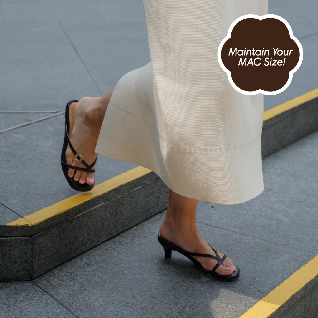 Timeless, sleek, and endlessly wearable. The Thongs Hana Heels in Black are the kind of pair you’ll reach for whenever you want a clean, polished finish. With a comfortable 1.5” heel and a toe-stopper front strap for improved grip, this style blends beauty with practicality. The Hana buckle gives it that little Machino charm, while the thick sponge insole keeps every step cushioned.