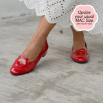 Bold, feminine, and effortlessly chic. The Bloom Ballerina Flats in Hana Red are crafted in a glossy red finish that instantly elevates your look. Fully covered with a sleek silhouette, this pair is finished with our iconic 6-petal Hana flower for a polished Machino signature.