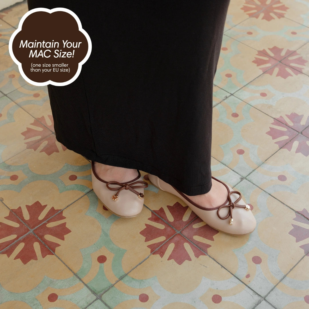 The Classic Ballerina Flats in Almond draw inspiration from the grace of pointe shoes, featuring a timeless round-toe design with a smooth, refined finish. The warm almond shade offers a versatile neutral tone, making it easy to pair with both casual outfits and dressier looks.