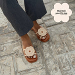 Freshen up your summer wardrobe with the Fresh Flats, a perfect blend of charm and everyday comfort. Designed with two slim beige straps and a delicately crafted triple beige Hana flower that creates a blooming effect, these locally made slip-ons add a soft, stylish touch to any outfit. Set on a neutral brown base, they’re effortlessly versatile and easy to wear.