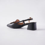 Classic with a modern Machino twist. The Loafer Mules in Hana Black deliver a sleek silhouette accented by a matching Hana flower and buckle for quiet elegance. The covered-front design paired with an adjustable slingback strap keeps things secure, while the cushioned sponge insole and 2” block heel ensure all-day comfort without compromise.